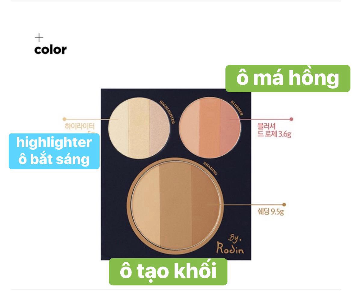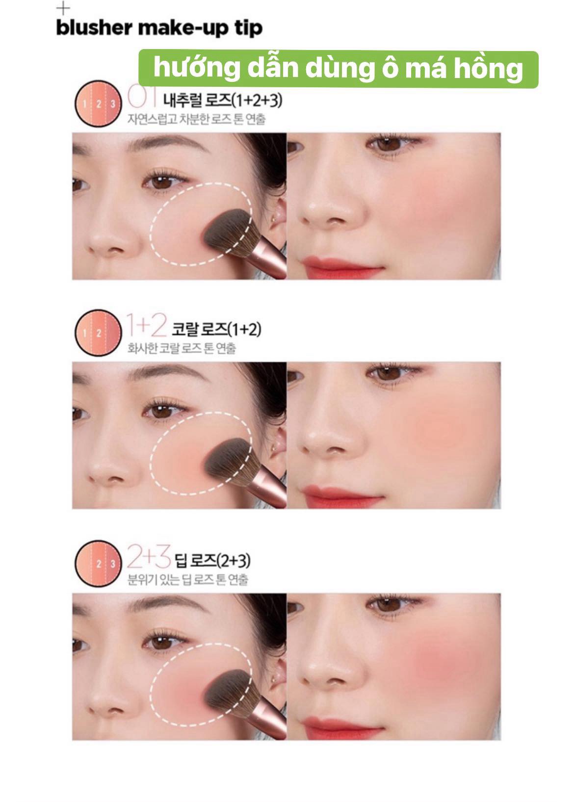 2. Ô Má hồng (Góc phải): Tán nhẹ lên vùng gò má giúp gương mặt tươi tắn, rạng rỡ ngay lập tức.
