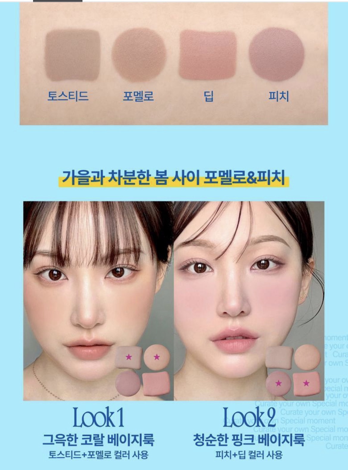 ✅ 4 ô màu trong 1: Từ tone nhạt làm nền đến tone đậm nhấn điểm, giúp gò má có chiều sâu và rạng rỡ hơn hẳn.