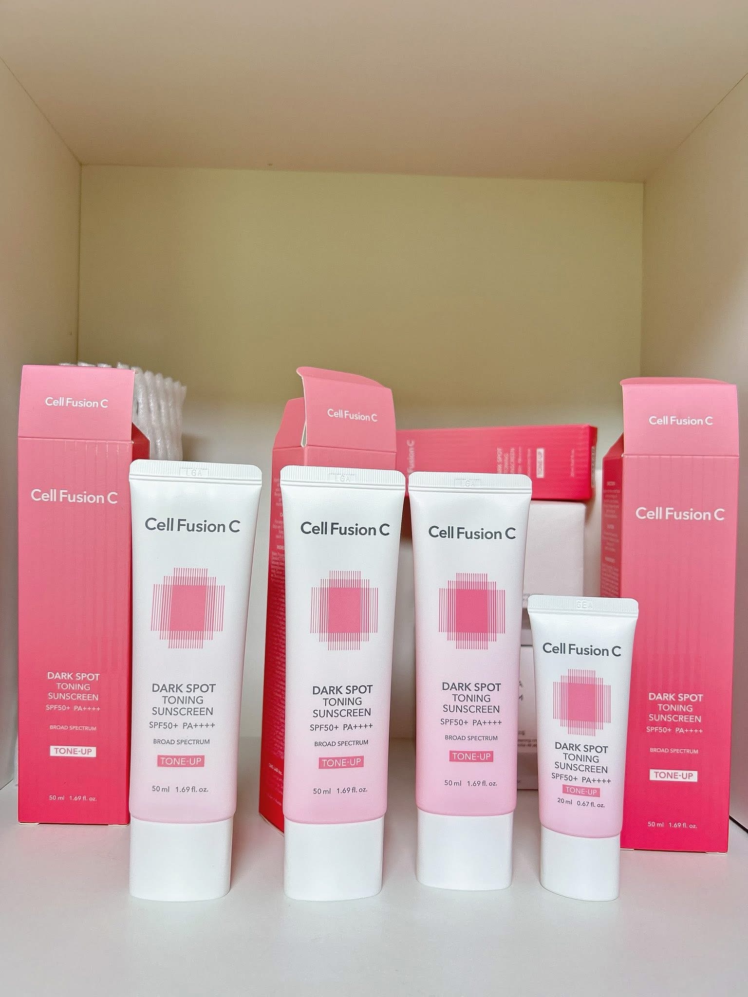 Kem chống nắng lên lông da – che khuyết điểm- dưỡng trắng trị nám của Cell Fusion C Dark Spot Toning Sunscreen 50ml