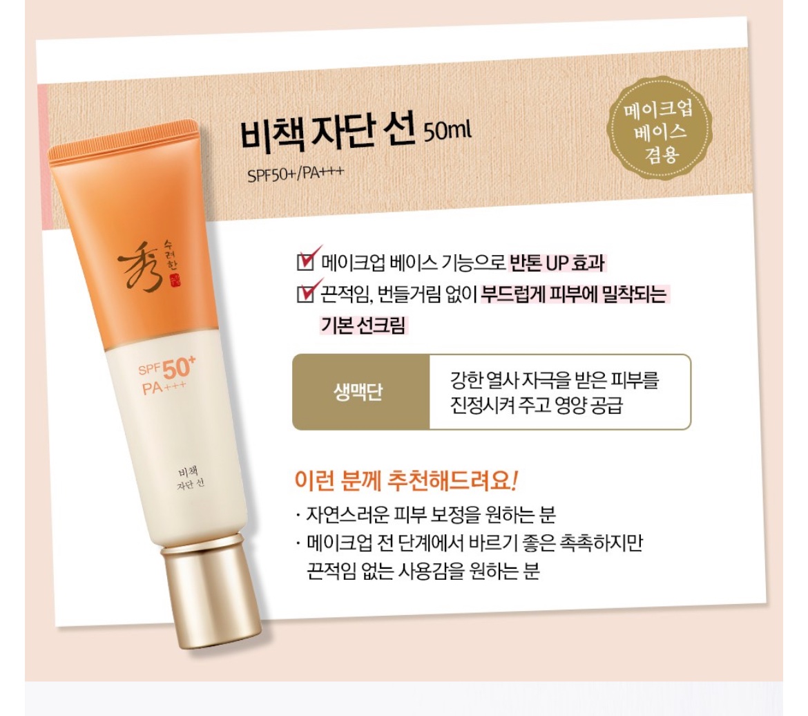 Sooryehan Bichaek Jadan Sun SPF50+/PA+++ 50ml