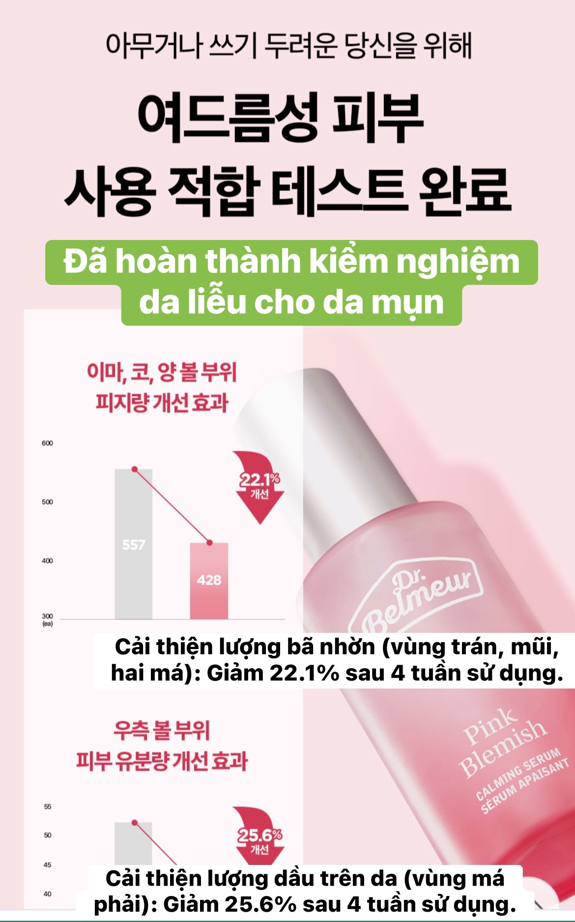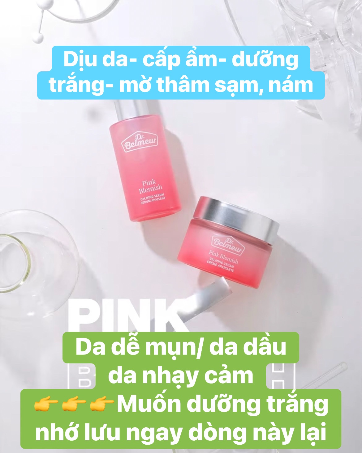 Kem dưỡng Dr.Belmeur Pink Blemish Calming cream 50ml: cấp ẩm- dịu da- dưỡng trắng mờ thâm sạm nám.