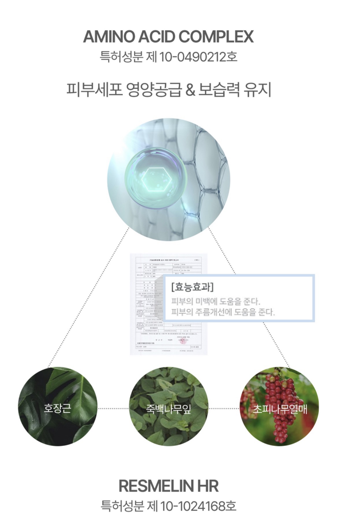 * Resmelin HR (Chiết xuất từ cốt khí củ, lá trắc bách, quả tiêu rừng): Thành phần được cấp bằng sáng chế giúp bảo vệ và làm sáng da.