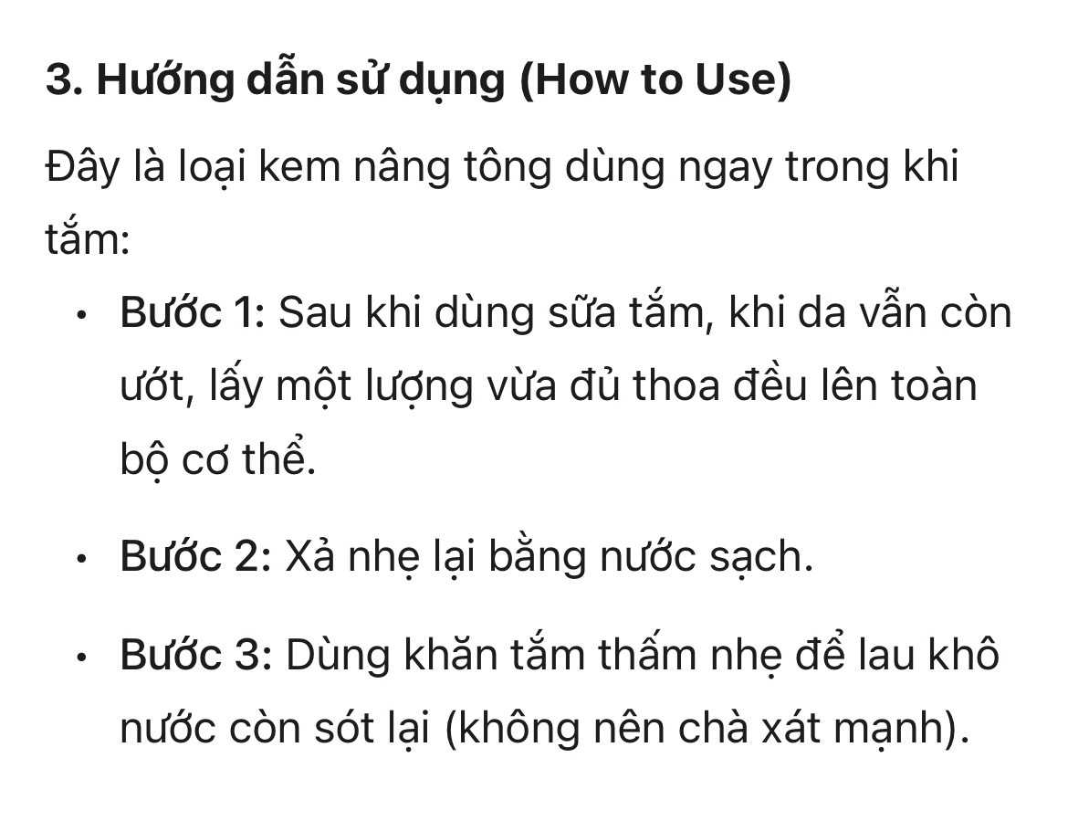 Đây là loại kem nâng tông dùng ngay trong khi tắm: