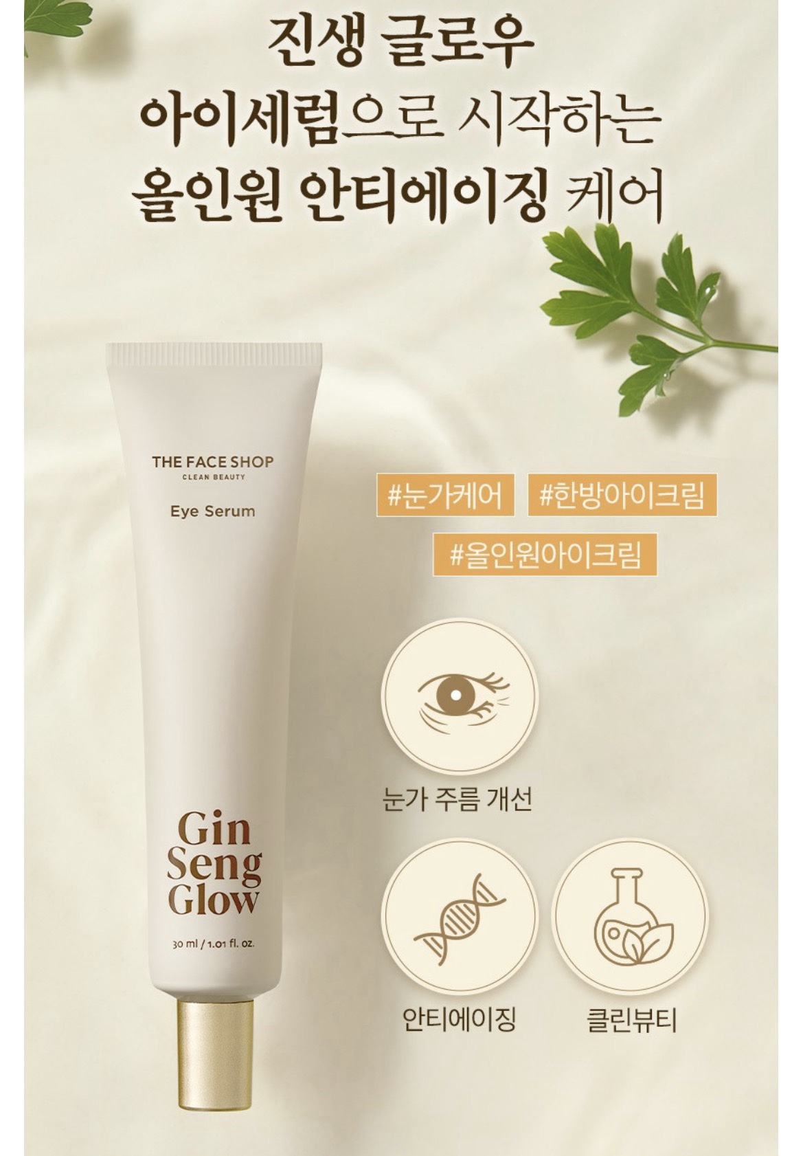 Kem mắt nhân sâm cao cấp xoá nếp nhăn trị thâm quầng mắt Ginseng Glow Eye Serum của The Face Shop 30ml