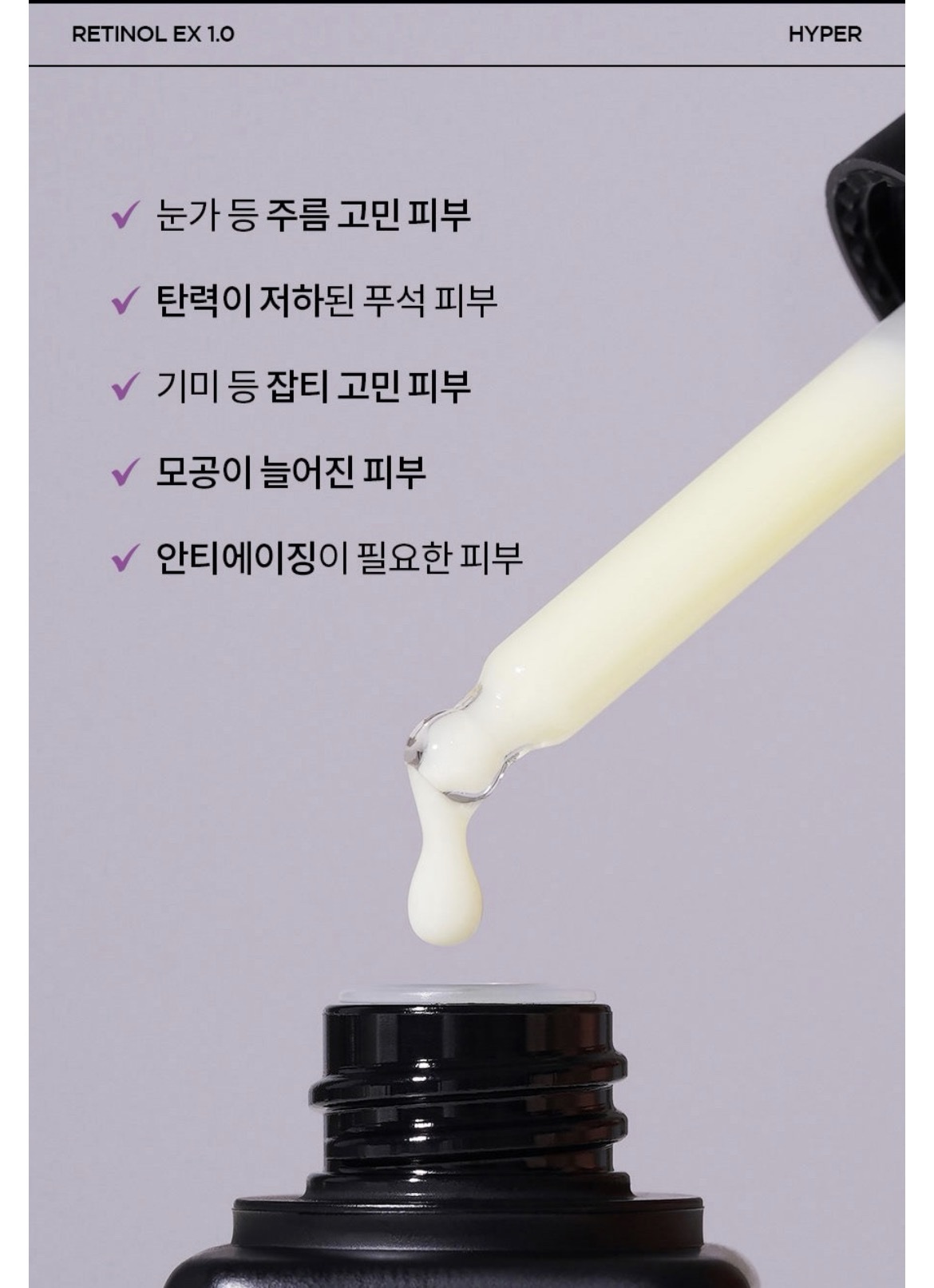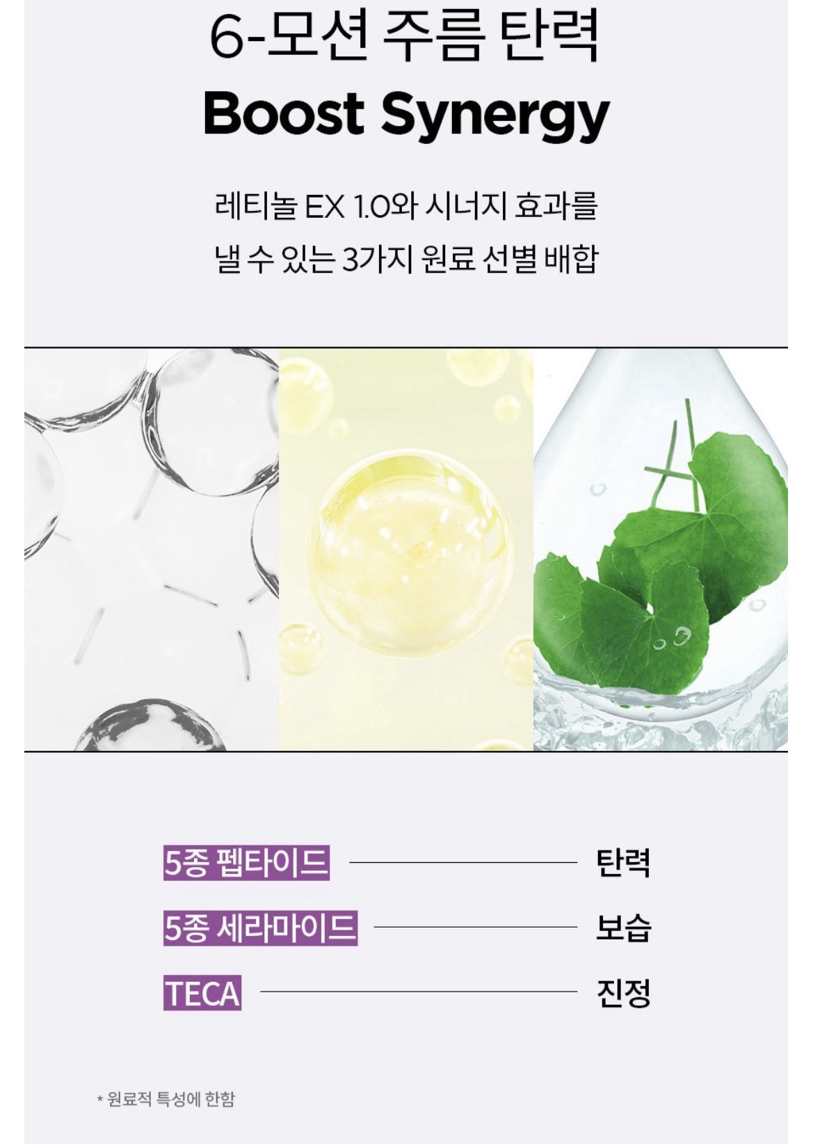 • Phức hợp Retinol EX 1.0%: Kết hợp giữa Retinol 0.1% (được làm ổn định bằng công nghệ bọc Capsule), Retinyl Palmitate 0.3% và Bakuchiol 0.6%.