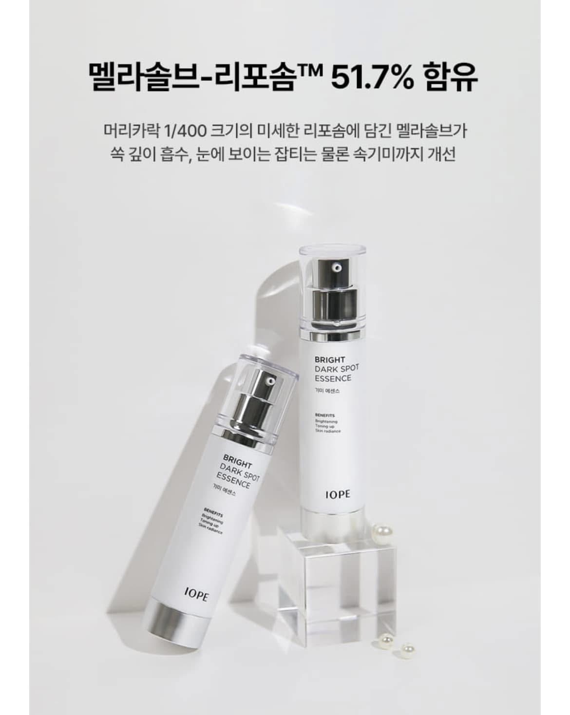 Tinh Chất IOPE Bright Dark Spot Essence dưỡng trắng- giảm thâm- mờ nám với Melasolv, một thành phần làm trắng độc đáo, chăm sóc các đốm đen và vết thâm cũng như hắc tố trên da.
