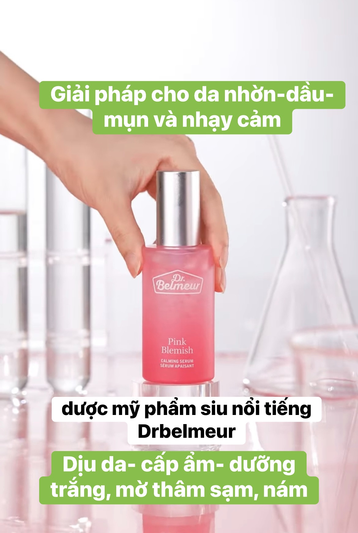 Tinh chất serum Dr.Belmeur Pink Blemish Calming Serum 50ml: cấp ẩm- dịu da- dưỡng trắng mờ thâm sạm nám.