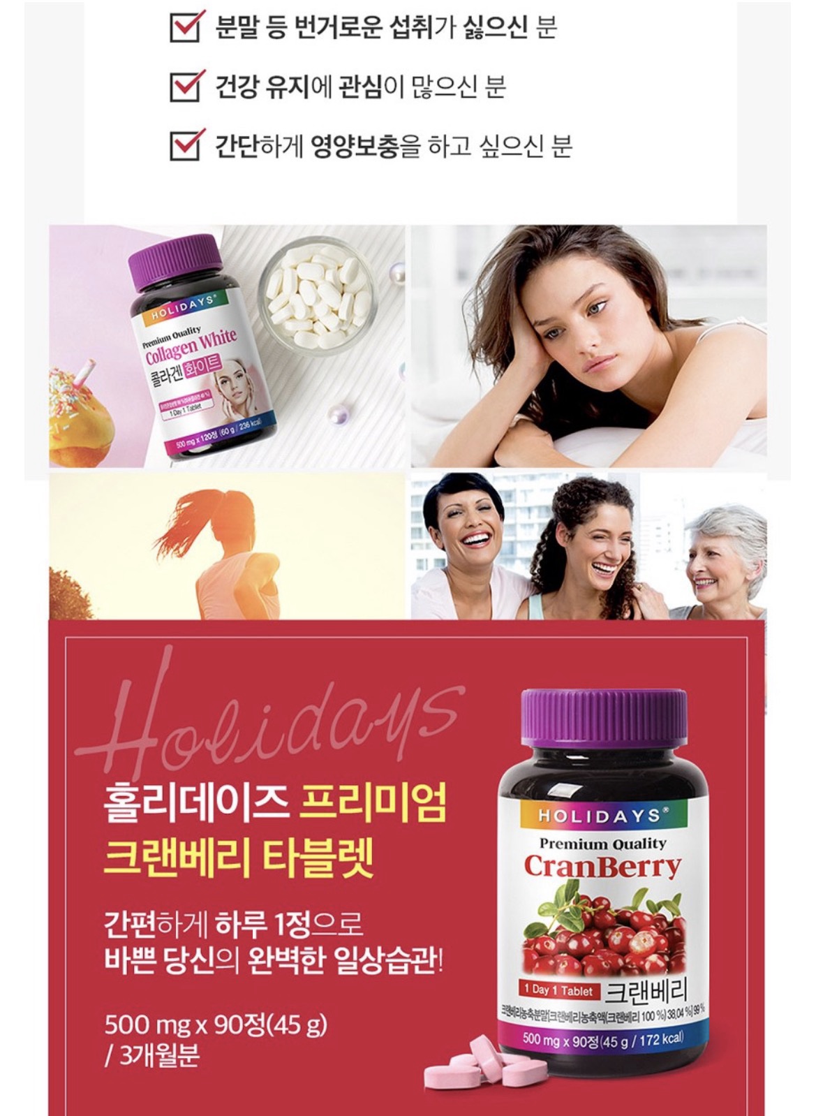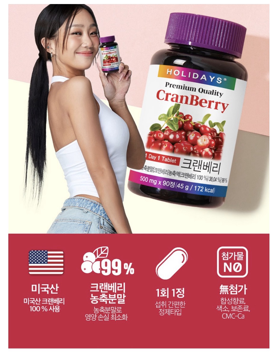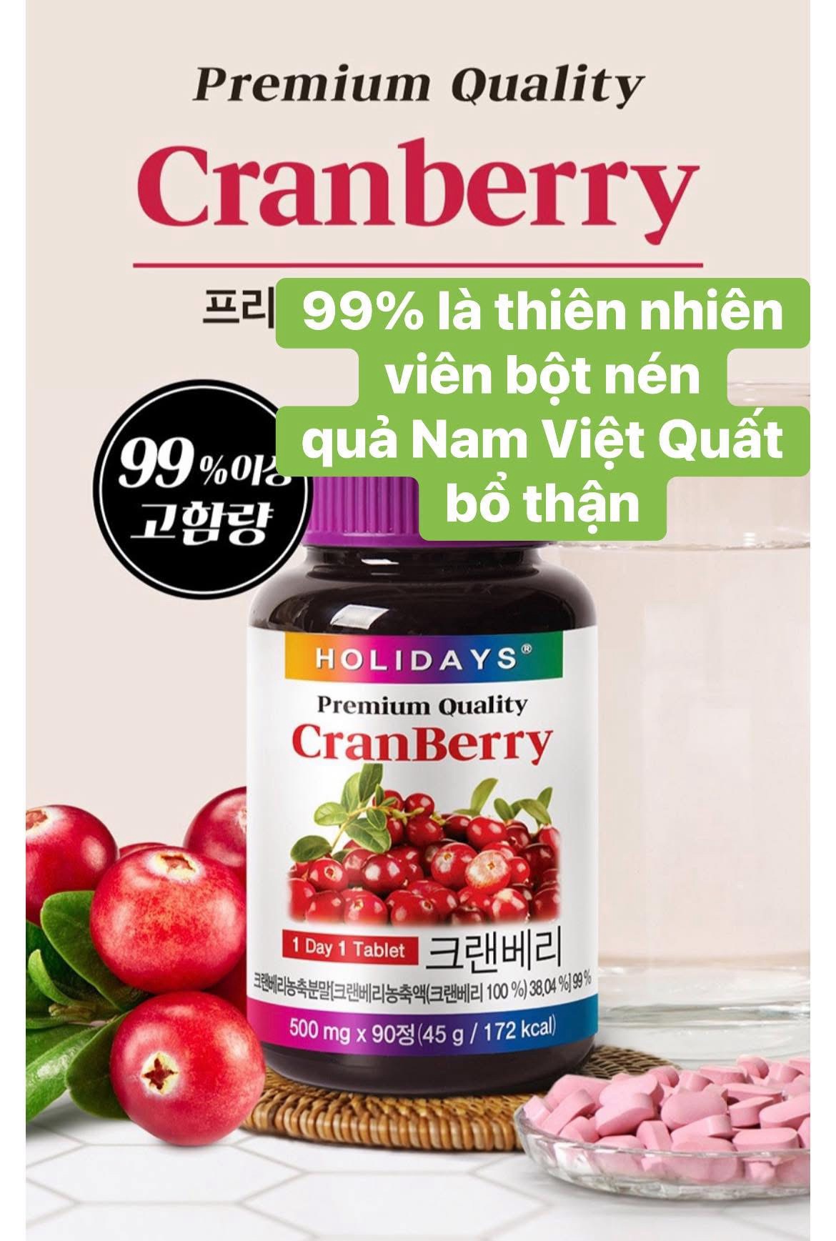 Viên uống bổ thận thiên nhiên từ quả Nam Việt Quất Holidays Premium Cranberry Tablet 90 viên